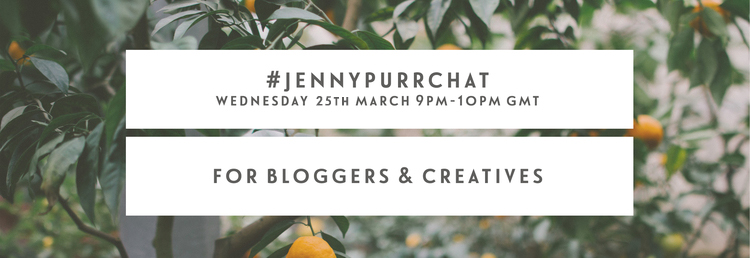 Keep next Wednesday 25th from 9pm-10pm free for #jennypurrchat, a Twitter chat for bloggers & creatives.