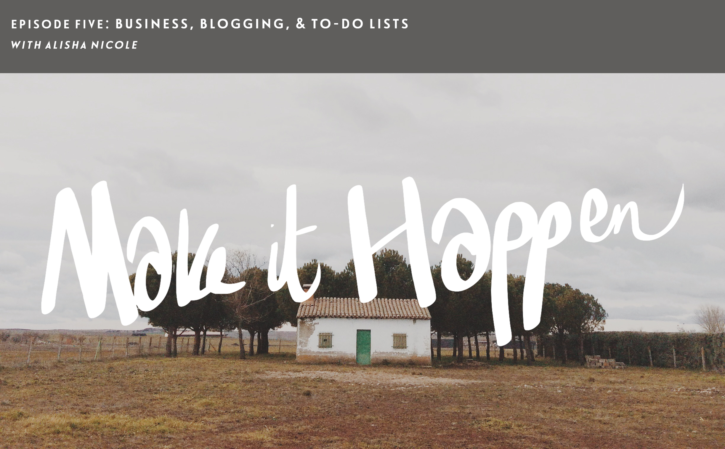 It's Thursday and that can only mean one thing - a brand new episode of Make It Happen. For today's episode I'm sharing with you a recent interview with the awesome Alisha Nicole where we talked all things blogging, business, and to-do lists. What started as an episode focused on Alisha's leap into entrepreneurship ended up being just under an hour of us two talking honestly and openly about the many things that play a part in our journey as creative entrepreneurs. I'm super excited to be sharing this episode with you today as I hope it can be really encouraging and insightful for you in your own creative journey.